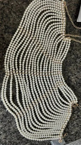 Acest lanț unic de corp cu perle transformă orice ținută într-o declarație de stil. Ideal pentru cluburi de noapte, petreceri tematice sau o zi șic la plajă. Potrivirea sa ajustabilă se potrivește confortabil majorității tipurilor de corp. Fabricat din perle și metal de înaltă calitate, acest accesoriu promite durabilitate. Adaugă o notă de eleganță și strălucire care durează ani de zile.